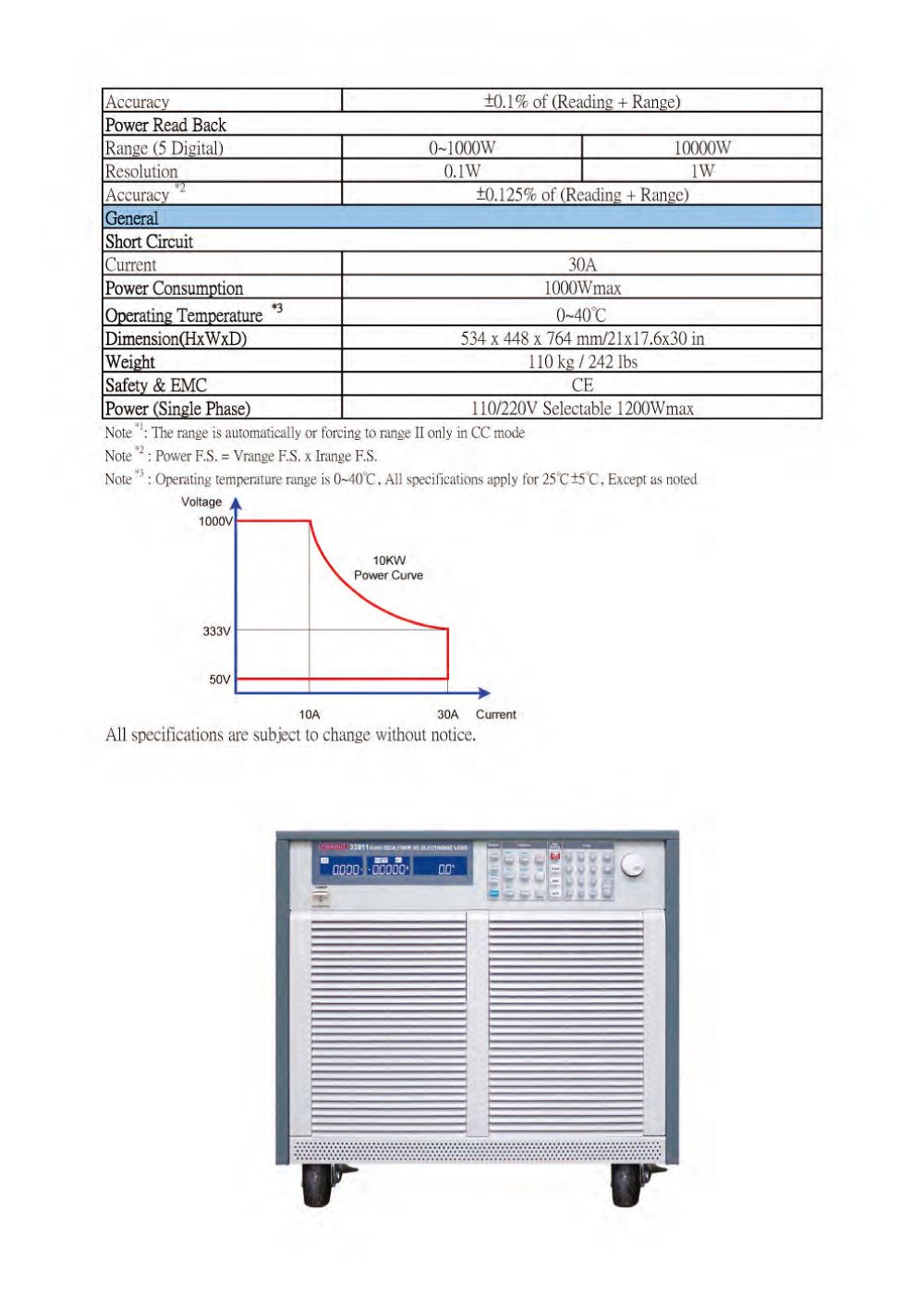 Power : 0 ~ 1000W/10KW, ±0.65%