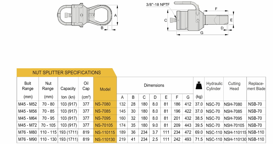 Protorque NS-110115 Hydraulic Nut Splitter (M76-M80) | EMIN.COM.LA