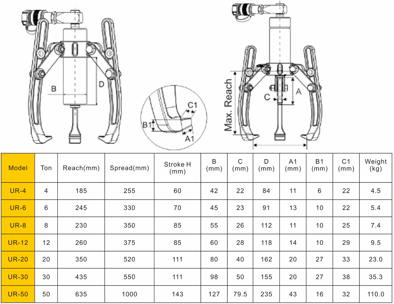 Protorque UR-4 Separating Hydraulic Puller (wooden case,4 ton) | EMIN.COM.LA