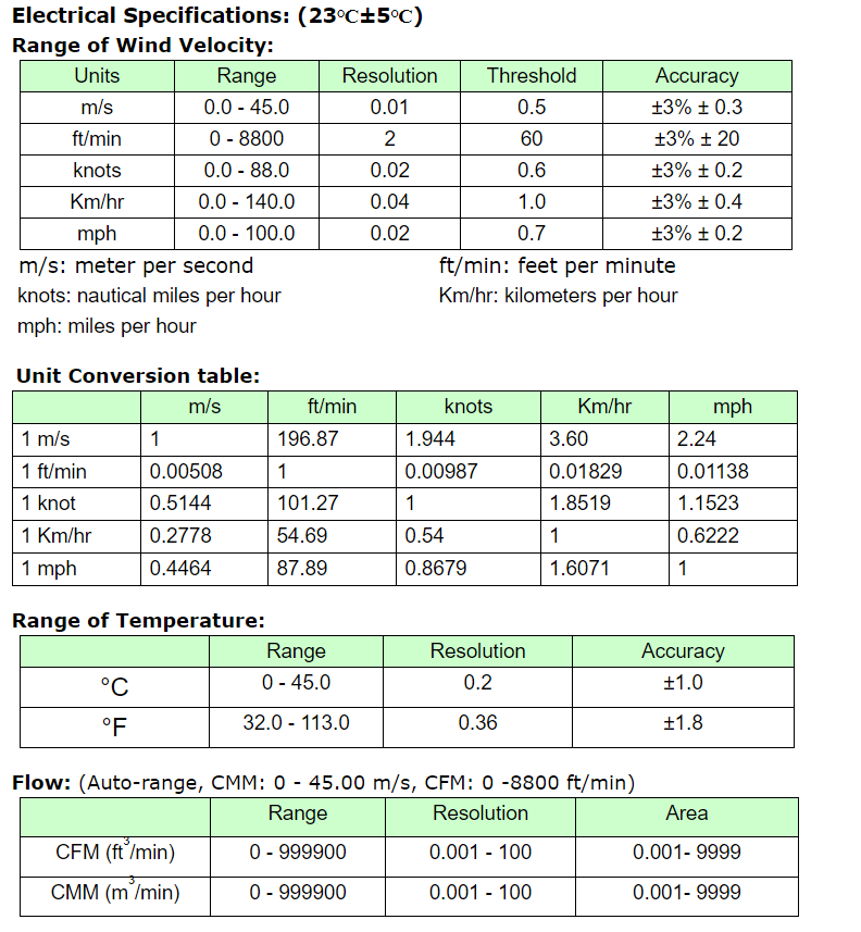 Operating Temperature: Meter: 0°C ~ 50°C (32°F ~ 122°F)