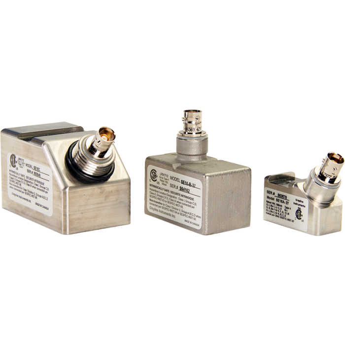 Transducer Cables: Triaxial, 7.6 m (25 ft) with BNC connectors and seal jackets (extendable up to 152.4 m (500 ft))