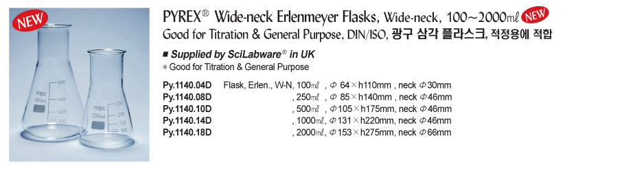 Pyrex Py.1140.10D ຄໍກ້ວາງ Erlenmeyer Flask (500ml) | EMIN.COM.LA