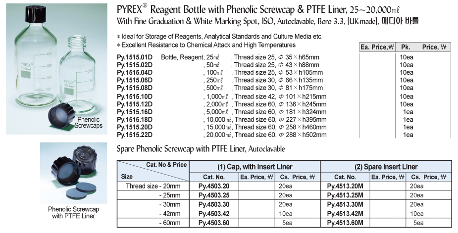 Pyrex Py.1515.04D ຂວດ Reagent ກັບ Phenolic Screwcap (100ml) | EMIN.COM.LA
