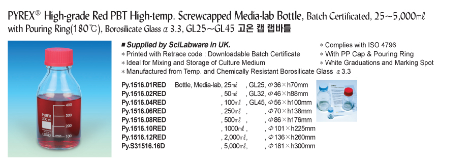 Pyrex Py.1516.08RED Screwcapped Media-lab ຂວດ (500ml) | EMIN.COM.LA