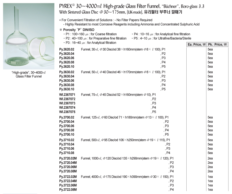 Pyrex Py.3620.10 ທໍ່ກອງແກ້ວຊັ້ນສູງ (P5: 4~10μm, 30ml) | EMIN.COM.LA