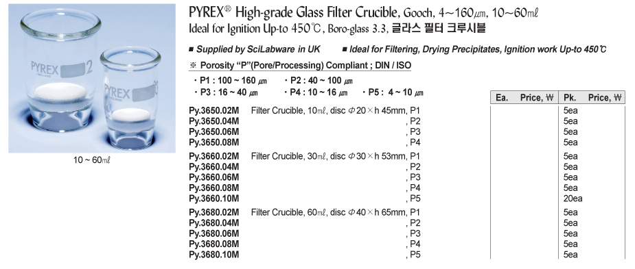Pyrex Py.3660.04M ເຄື່ອງກອງແກ້ວຊັ້ນສູງ Crucible (P2: 40 - 100 ㎛) | EMIN.COM.LA