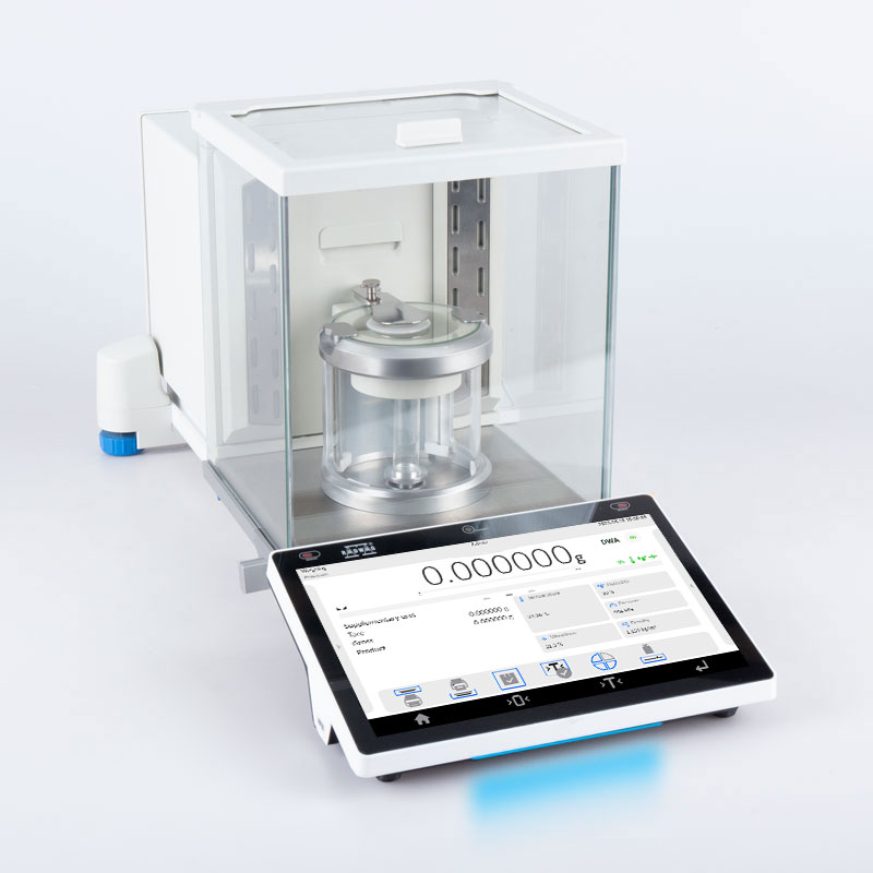 -Delivery components: Microbalance, weighing pan, weighing pan shield, power supply, automatic pipette calibration adapter: (base, bottom ring, glass vessel, pipette calibration adapter, evaporation ring, weighing pan, glass lid, mechanical closing cover, protecting screw), brush, fabric dust cover.