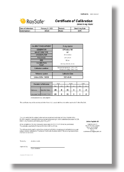 Raysafe 5610029 ໃບຮັບຮອງການປັບຕົວວັດ DXR+ | EMIN.COM.LA