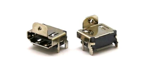 Rego Electronics RG9918-117A10-A2B0 HDMI Connectors Right Angle mounted, SMD 1u Gold plated Flange type, w/poisition peg | EMIN.COM.LA