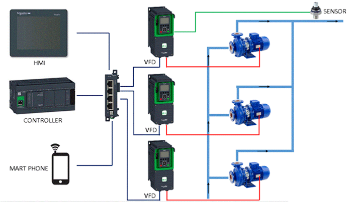 tần dùng cho chức năng bảo vệ bơm và kiểm soát lưu lượng nước bơm về trung tâm