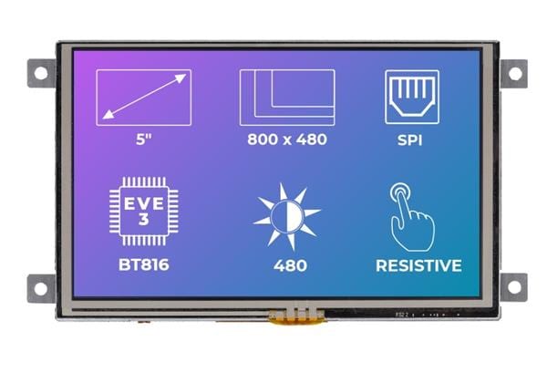 Riverdi SM-RVT50AQBFWR00 ຈໍ TFT LCD 5.0", EVE3, ເຟຣມ, RTP, ການຕິດຕັ້ງອາກາດ | EMIN.COM.LA