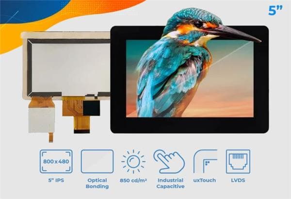Riverdi SM-RVT50HQLNWC00-B ຈໍ TFT LCD 5.0", LVDS, ບໍ່ມີເຟຣມ, CTP, ການຕິດຕໍ່ແບບແອດອບຕິກ | EMIN.COM.LA