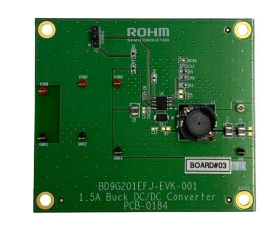 ROHM Semiconductor BD9G201EFJ-EVK-001 ຕົວຄວບຄຸມແຮງດັບໄຟຟ້າ - ຕົວຄວບຄຸມແຮງດັບໄຟຟ້າປ່ຽນແປງ ຍອມຮັບການປ້ອນພະລັງງານ 4.5V ຫາ 42V, ສ້າງຜົນອອກຈາກ 1V ຫາ VCC, ຂະໜາດແຮງດັບໄຟຟ້າປ້ອນ 10V ຫາ 42V ແລະສາມາດຜະລິດຜົນອອກຄົງທີ່ 5V ໄດ້.