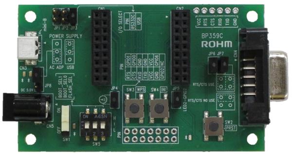 ROHM Semiconductor BP359C ບອດປະເມີນຜົນຂອງມູດ WiFi ອິນເຕີເຟດ UART BP359C: BP359C ແມ່ນບອດອິນເຕີເຟດ UART ທີ່ໃຊ້ຮ່ວມກັນກັບ BP35C5-T01 | EMIN.COM.LA