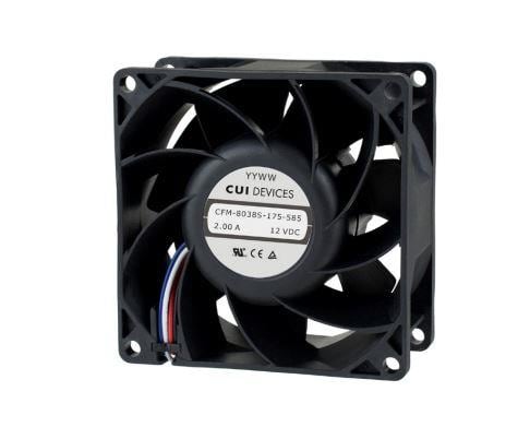 Same Sky (formerly CUI Devices) CFM-8038S-140-449-22 ພັງລົມກະທົບຕົວຕົວຕົວ DC 80 mm ສີ່ແຫຼງ 38 mm 10.8 13.2 Vdc 4.56 W 4000 RPM 49.42 CFM AR TSPWM