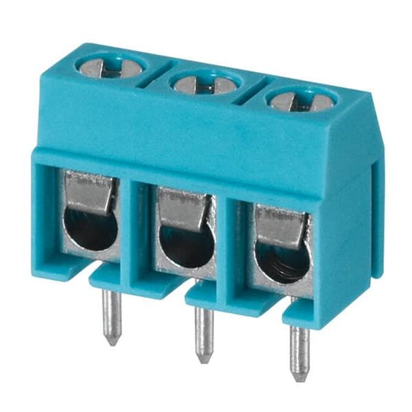 Same Sky (formerly CUI Devices) TB002-500-03BE ບລັອກຂໍ້ຕໍ່ຄົງທີ່ ບລັອກຂໍ້ຕໍ່, ປະເພດດ້ວຍກຸມສະກຣູ, 5.00 , ຢູ່ແຖວ, 3 ໂພນ, CUI ສີຟ້າ, ກຸມສະກຣູມີຊ່ອງ, ຕິດບົດ PCB