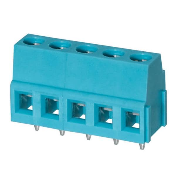 Same Sky (formerly CUI Devices) TB007-508-05BE ບລັອກຂໍ້ຕໍ່ຄົງທີ່ Terminal block, screw type, 5.08 , horizontal, 5 poles, CUI Blue, slotted screw, PCB mount