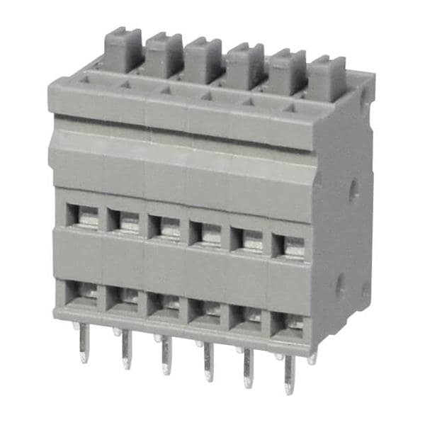Same Sky (formerly CUI Devices) TBL009V-254-06GY-2GY ບລັອກຂໍ້ຕໍ່ຄົງທີ່ Terminal block, screwless, 2.54, Vertical, 6, ສີເທົາກັບປຸ່ມສີເທົາ