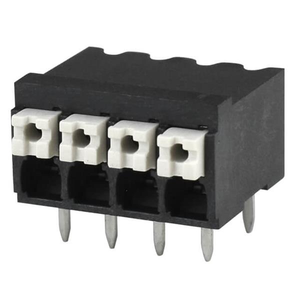 Same Sky (formerly CUI Devices) TBLH10-350-04BK ບລັອກຂໍ້ຕໍ່ຄົງທີ່ Terminal block, screwless, High Temp, 3.5, Horizontal, 4, Black w Gray Button