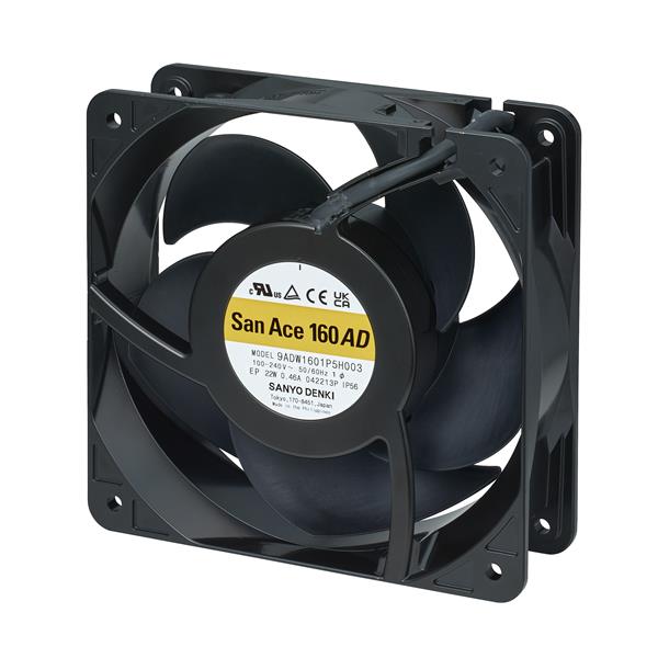 Sanyo Denki 9ADW1601H5H001 ພັງ AC/DC ພັງລົມ AC, DC Axial Fan, 160x160x51mm, 100-240VAC, Splash Proof, Speed Sensor, IP56 | EMIN.COM.LA