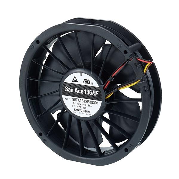 Sanyo Denki 9RFA1312P3G001 ພັງລົມ Axial DC, ການໄຫຼກັບຄືນໄດ້, ຮູບກົງກົງ 136x28mm, 12VDC, Tach/PWM | EMIN.COM.LA