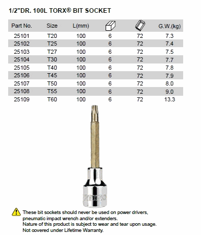 SATA 25104 ດຣ. ເຕົ້າສຽບ TORX BIT 100L (T-30 1/2inch) | EMIN.COM.LA