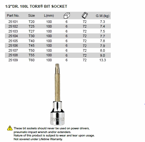 SATA 25108 ດຣ. ເຕົ້າສຽບ TORX BIT 100L (T-55 1/2inch) | EMIN.COM.LA