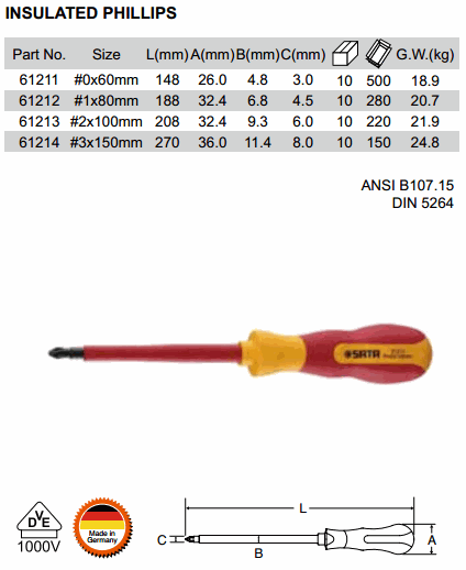 SATA 61211 ຟີລລິບສທີ່ມີ insulated (148mm, #0x60mm) | EMIN.COM.LA