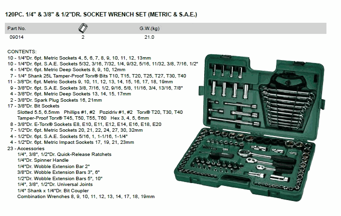 8, 9, 10, 11, 12, 13, 14, 17, 18, 19mm