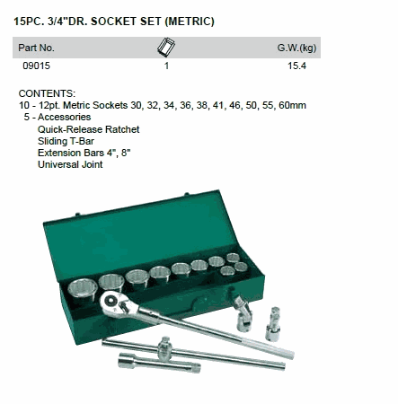 SATA 09015 15PC. 3/4 ນິ້ວ DR. ຊຸດ SOCKET (METRIC) | EMIN.COM.LA