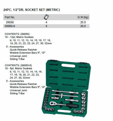 SATA 09060 ດຣ. ຊຸດ SOCKET (24PC. 1/2inch) | EMIN.COM.LA