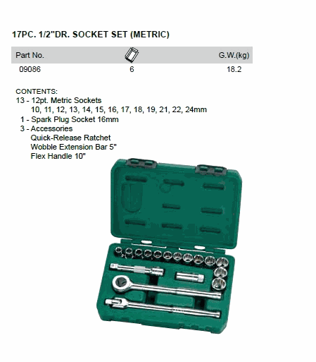 SATA 09086 17PC. 1/2 ນິ້ວ DR. ຊຸດ SOCKET (1/2inch,17 chi tiết) | EMIN.COM.LA