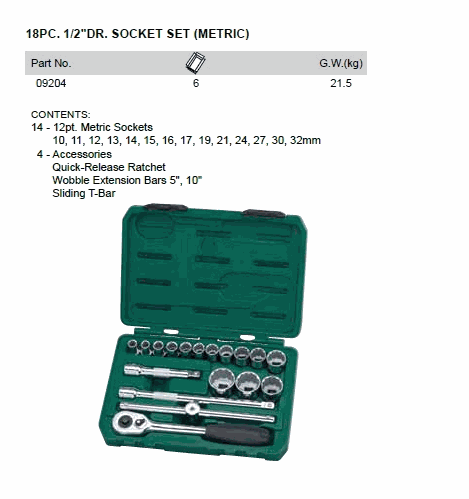 SATA 09204 ຊຸດ DR SOCKET 18PC 1/2 ນິ້ວ (1/2inch,18 chi tiết) | EMIN.COM.LA