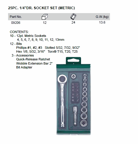 SATA 09206 ຊຸດ DR SOCKET 25PCS 1/4"DR (METRIC) | EMIN.COM.LA