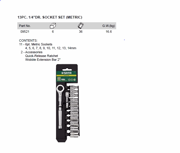 SATA 09521 ຊຸດ DR SOCKET 1/4 ນິ້ວ (METRIC) (1/4inch) | EMIN.COM.LA