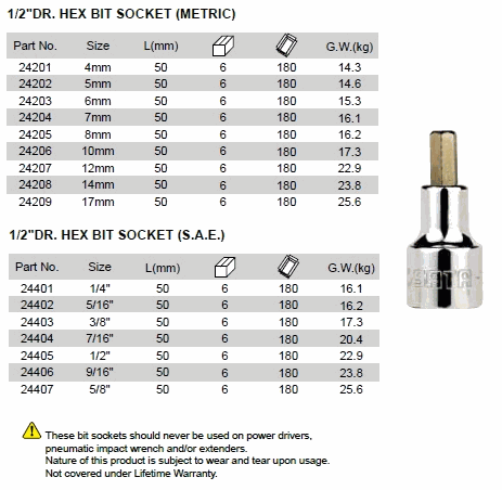 SATA 24203 ດຣ. HEX BIT SOCKET (SAE) (1/2inch,6mm) | EMIN.COM.LA