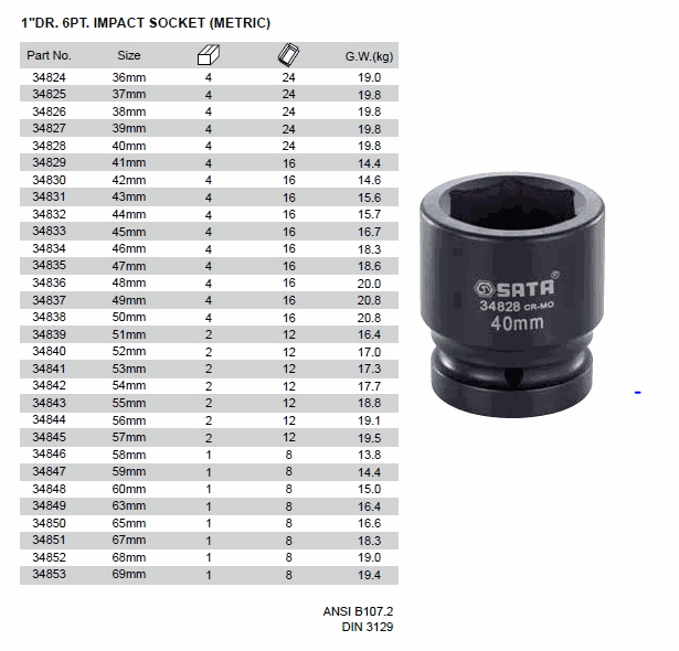 SATA 34832 DR IMPACT SOCKET (1inch,44mm) | EMIN.COM.LA