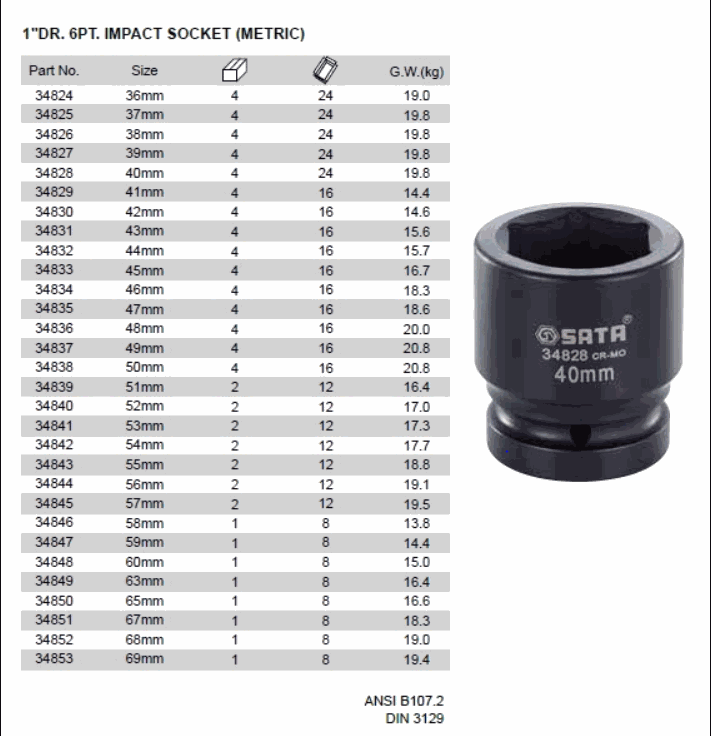 SATA 34841 1ນິ້ວ DR IMPACT SOCKET (1inch,53mm) | EMIN.COM.LA