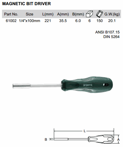 SATA 61002 ໄດເວີບິດແມ່ເຫຼັກ (4 inch, 100mm) | EMIN.COM.LA