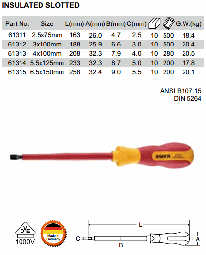SATA 61311 Slotted insulated (163mm, 2.5x75mm) | EMIN.COM.LA