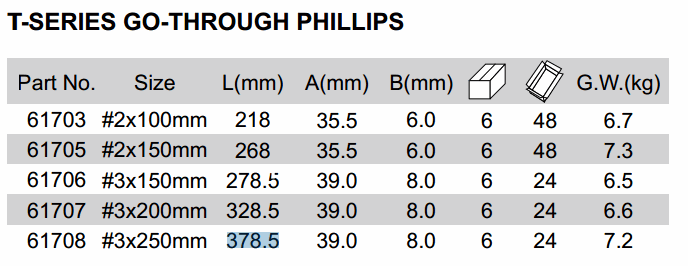 SATA 61708 T-SERIES ໄປຜ່ານຟີລິບ (378.5 mm, #3x250 mm) | EMIN.COM.LA