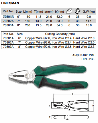SATA 70302A LINESMAN PLIER 7 ນິ້ວ (7 inch) | EMIN.COM.LA