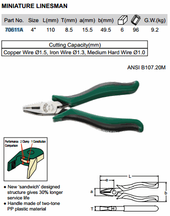 SATA 70611A PLIER MINIATURE LINESMAN PLIER (4 inch) | EMIN.COM.LA