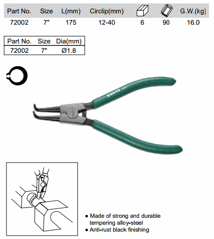 SATA 72002 SNAP RING - ພາຍນອກເປີດໂຄ້ງ (7inch, 12-40mm) | EMIN.COM.LA
