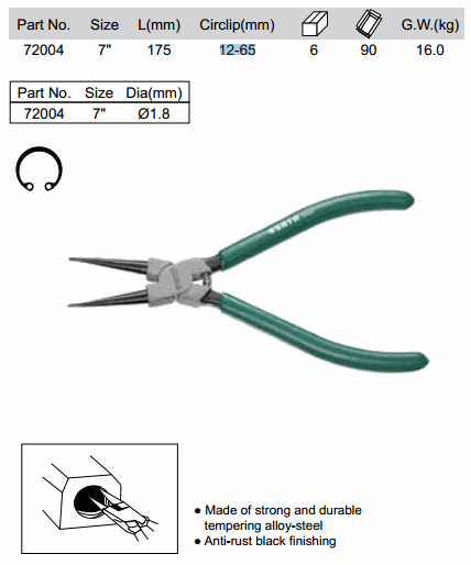 SATA 72004 SNAP RING - ປິດພາຍໃນຊື່ (7 inch, 12-65 mm) | EMIN.COM.LA
