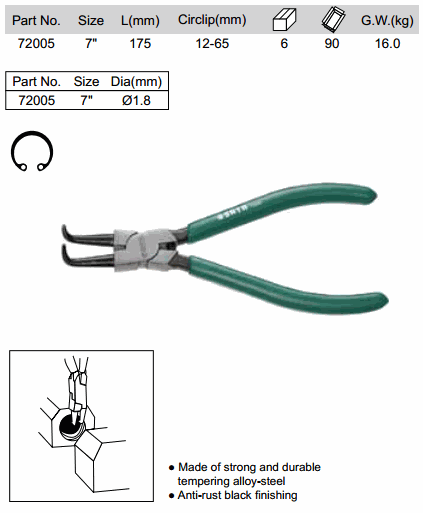 SATA 72005 ວົງແຫວນ - ພາຍໃນປິດໂຄ້ງ (7 inch, 12-65 mm) | EMIN.COM.LA