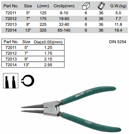 SATA 72011 ປະເພດ SNAP RING PLIERS ພາຍນອກຊື່ (5 inch, 8-10 mm) | EMIN.COM.LA