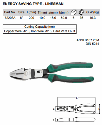 SATA 72203A ປະເພດການປະຫຍັດພະລັງງານ - PLIER LINESMAN 8 ນິ້ວ (ø2.6mm) | EMIN.COM.LA