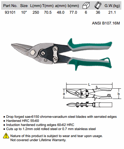 SATA 93101 AVIATION TIN SNIPS - ຊ້າຍ (10 inch, 250 mm) | EMIN.COM.LA