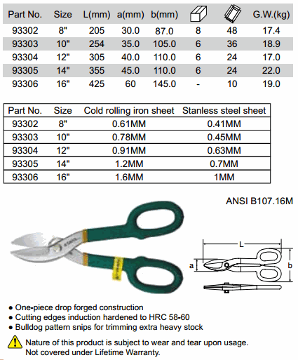 SATA 93306 SNIPS ຮູບແບບຊື່ (16 inch, 425 mm) | EMIN.COM.LA